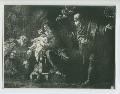 Riproduzione fotografica del dettaglio centrale di un dipinto raffigurante un'Adorazione dei Magi e attribuito, a partire dal 1950, a Francesco Fontebasso. Alla data di scatto (ante 1924) Antonio Morassi attribuiva il quadro a Sebastiano Ricci.