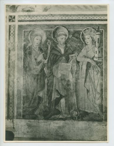 Riproduzione fotografica di un particolare degli affreschi della navata del Santuario di Santa Maria alle Lastre, nelle vicinanze di Beram (Vermo), frazione del comune di Pisino (Croazia). Gli affreschi tardogotici, che decorano il santuario, sono stati realizzati da Vincenzo di Castua (sec. XV) e raffigurano scene della vita della Madonna e di Cristo.