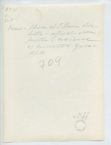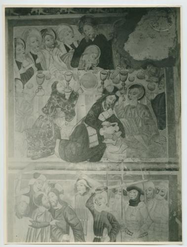 Riproduzione fotografica di un particolare degli affreschi della navata del Santuario di Santa Maria alle Lastre, nelle vicinanze di Beram (Vermo), frazione del comune di Pisino (Croazia). Gli affreschi tardogotici, che decorano il santuario, sono stati realizzati da Vincenzo di Castua (sec. XV) e raffigurano scene religiose. Nello specifico, la lavanda dei piedi durante l'ultima cena.
