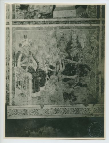Riproduzione fotografica di un particolare degli affreschi del Santuario di Santa Maria alle Lastre, nelle vicinanze di Beram (Vermo), frazione del comune di Pisino (Croazia). Gli affreschi tardogotici, che decorano il santuario, sono stati realizzati da Vincenzo di Castua (sec. XV) e raffigurano scene religiose. Nello specifico, la strage degli innocenti.
