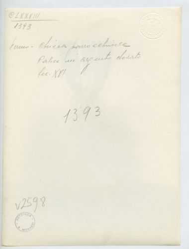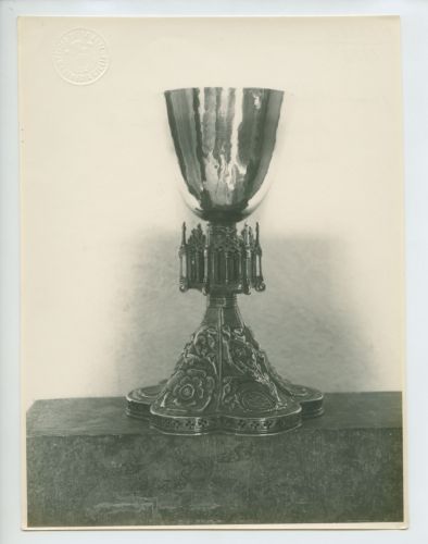 Riproduzione fotografica di un calice in argento dorato (sec. XVI), custodito presso il Santuario di Santa Maria alle Lastre, nelle vicinanze di Beram (Vermo), frazione del comune di Pisino (Croazia).