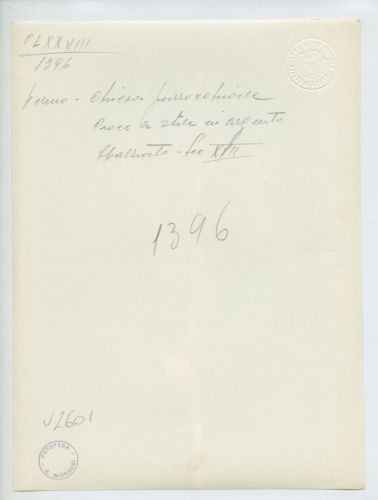 Riproduzione fotografica di una croce in argento sbalzato (sec. XVII), custodita presso il Santuario di Santa Maria alle Lastre, nelle vicinanze di Beram (Vermo), frazione del comune di Pisino (Croazia).