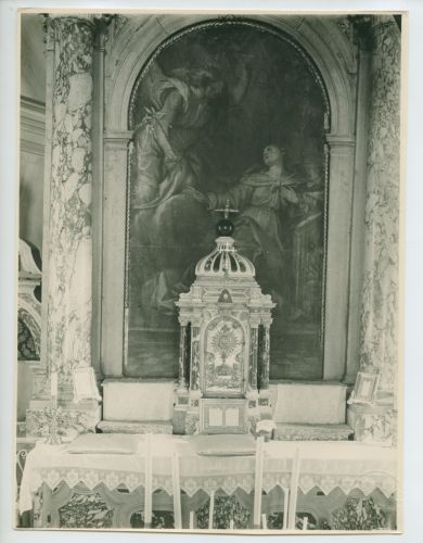 Riproduzione fotografica della pala d'altare (sec. XVI) collocata presso la chiesa parrocchiale di Svetvinčenat (Sanvincenti), comune croato situato nella parte centro-meridionale dell'Istria, raffigurante l'Annunciazione.