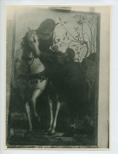 Riproduzione fotografica della pala con San Martino e il povero del Polittico di Zara, dipinto realizzato da Carpaccio per la Cattedrale di Zadar (Zara) tra il 1480-1490.