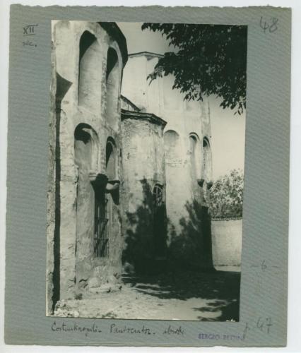 Riproduzione fotografica dell'abside della Chiesa di Cristo Pantocratore - in seguito divenuta moschea e nota come moschea di Zeyrek - ripreso dall'esterno.