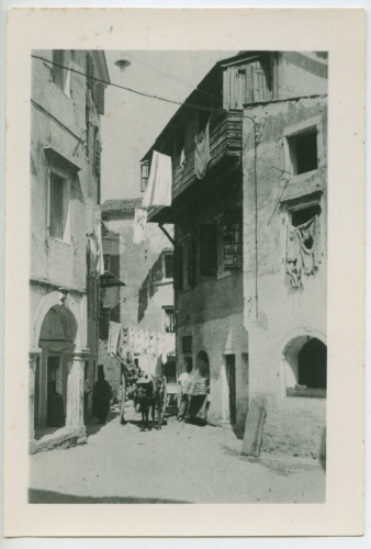 Isola di Corfù, scorcio di una via di Corfù. E' visibile un carretto trainato da un mulo.