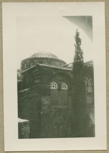 Distomo, ex comune della Grecia nella periferia della Grecia Centrale. La cupola della Chiesa di Ossios Loukas ripresa dall'esterno.