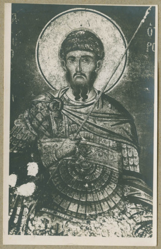 Monte Athos. Particolare di un affresco raffigurante San Teodoro Tirone.