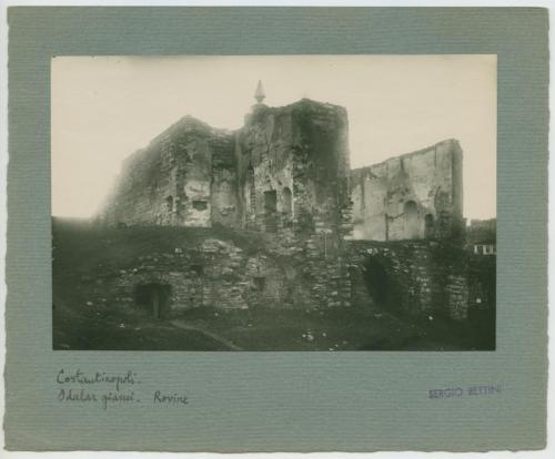 Riproduzione fotografica di una porzione di ciò che rimane delle mura di Costantinopoli.