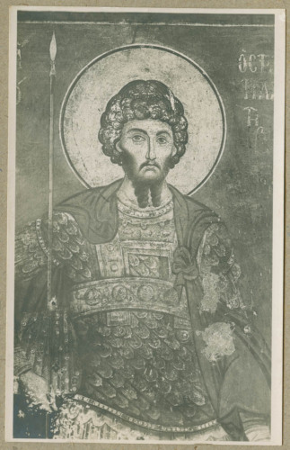 Monte Athos. Particolare di un affresco raffigurante San Teodoro Stratilate.