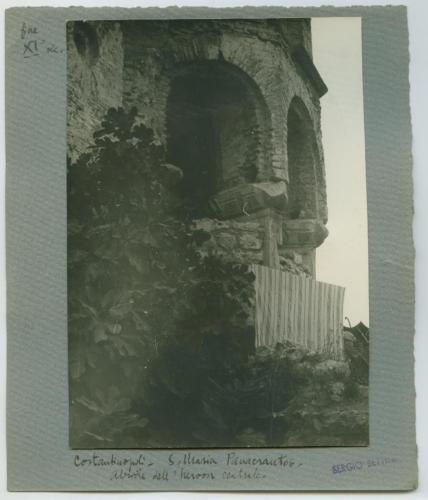 Riproduzione fotografica di una porzione esterna dell'abside della moschea di Fenâri Isa di Istanbul, costituita da due ex-chiese ortodosse orientali e conosciuta in età bizantina come monastero di Lips.