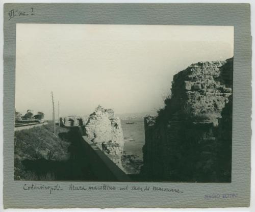 Riproduzione fotografica delle mura costiere che affacciano sul Mar di Marmara a Istanbul.