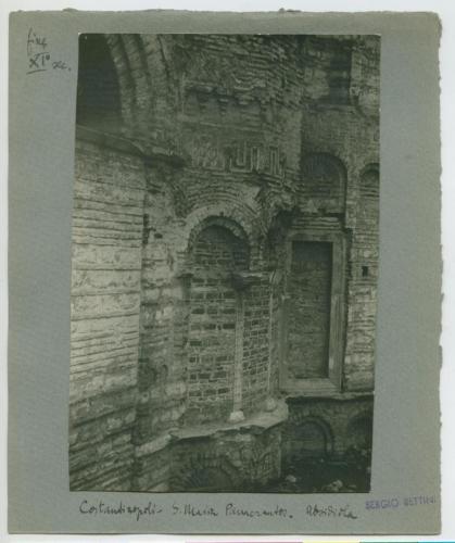 Riproduzione fotografica di una porzione esterna dell'abside della moschea di Fenâri Isa di Istanbul, costituita da due ex-chiese ortodosse orientali e conosciuta in età bizantina come monastero di Lips.