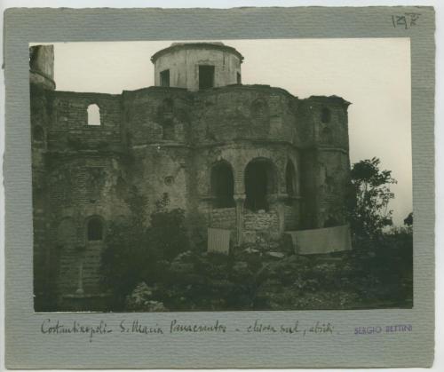 Riproduzione fotografica di una porzione esterna della moschea di Fenâri Isa di Istanbul, costituita da due ex-chiese ortodosse orientali e conosciuta in età bizantina come monastero di Lips.