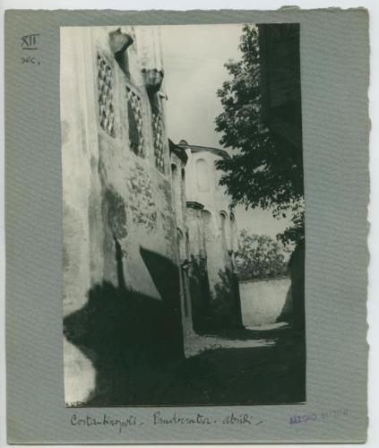 Riproduzione fotografica dell'abside della Chiesa di Cristo Pantocratore - in seguito divenuta moschea e nota come moschea di Zeyrek - ripreso dall'esterno.