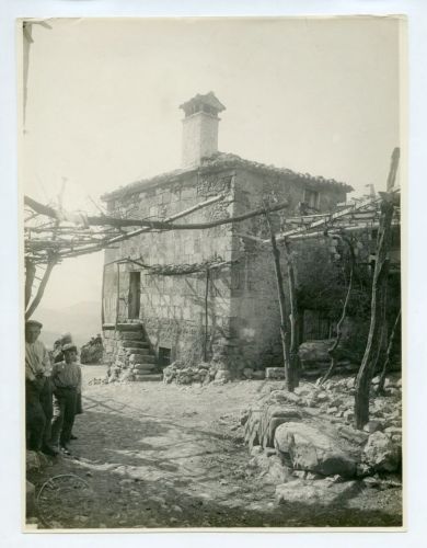 Riproduzione fotografica di un'antica casa di campagna presso Črni Kal (San Sergio, in passato Cernical), città della Slovenia.