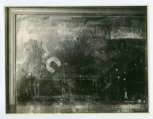 Riproduzione fotografica di un dettaglio della dipinto di Paolo Veneziano raffigurante episodi della vita del Beato Leone Bembo prima del restauro. Il dettaglio si riferisce alla porzione superiore sinistra della tavola: Rinvenimento del corpo del Beato Leone Bembo. Il dipinto è conservato presso il Duomo di San Biagio a Dignano, città della Croazia.