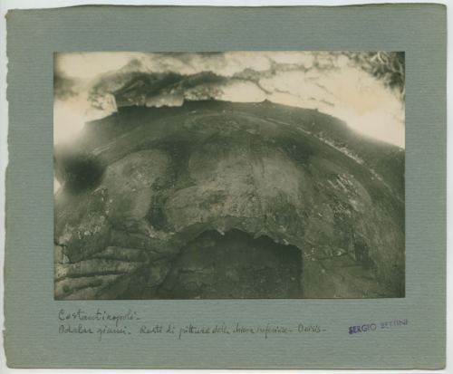 Riproduzione fotografica di un dettaglio dell'affresco presente nella moschea di Odalar a Istanbul che rappresenta la Deisis, tema iconografico cristiano di matrice culturale bizantina, molto diffuso nel mondo ortodosso. Nella rappresentazione archetipica, in genere, si vede Cristo benedicente tra la Madonna e san Giovanni Battista (in alcune rappresentazioni sostituito da San Nicola o altri santi) in atto di preghiera e supplica per i peccatori. Il particolare fotografato restituisce la composizione altamente deteriorata e quasi illeggibile.