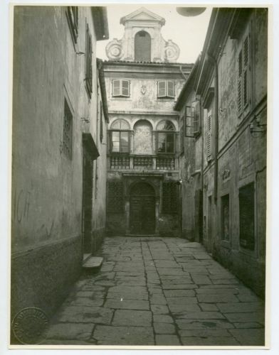 Riproduzione fotografica della facciata principale della casa dei marchesi Gravisi Barbabianca a Koper (Capodistria), città della Slovenia. L'edificio era conosciuto come "La Camerale".