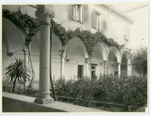 Riproduzione fotografica del cortile dell'ex convento dei Servi di Maria a Koper (Capodistria), città della Slovenia. Nel momento della ripresa l'ex convento era stato riconvertito in ospedale civico.