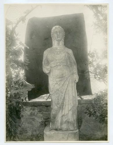 Riproduzione fotografica di una scultura raffigurante la Giustizia conservata, nel momento della ripresa, presso il giardino della famiglia De Mori a Koper (Capodistria), città della Slovenia.