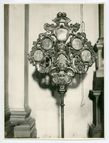 Riproduzione fotografica di un segnale da processione del sec. XVIII conservato, al momento della ripresa, presso la Cattedrale dell'Assunta e di San Nazario a Koper (Capodistria), città della Slovenia.
