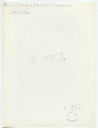 Riproduzione fotografica di uno degli affreschi sul soffitto della ex chiesa di San Francesco a Koper (Capodistria), città della Slovenia.