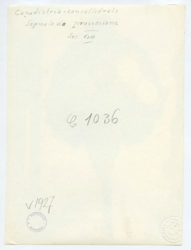 Riproduzione fotografica di un segnale da processione del sec. XVIII conservato, nel momento della ripresa, presso la Cattedrale dell'Assunta e di San Nazario a Koper (Capodistria), città della Slovenia.
