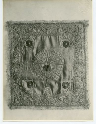 Riproduzione fotografica di un copricalice ricamato (risalente al sec. XVII) conservato, nel momento della ripresa, presso la Chiesa di S. Anna a Koper (Capodistria), città della Slovenia.