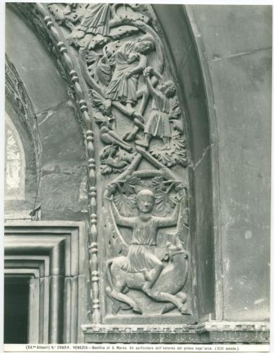 Riproduzione fotografica di una porzione del bassorilievo nella fascia esterna del primo arcone del portale centrale della facciata occidentale della Basilica di San Marco a Venezia.