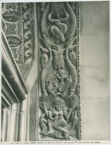 Riproduzione fotografica di una porzione del bassorilievo nella fascia interna del primo arcone del portale centrale della facciata occidentale della Basilica di San Marco a Venezia.