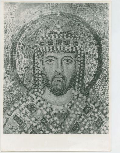 Riproduzione fotografica del mosaico che rappresenta il volto dell'imperatore Alessandro, collocato nella tribuna della basilica di Santa Sofia a Istanbul.