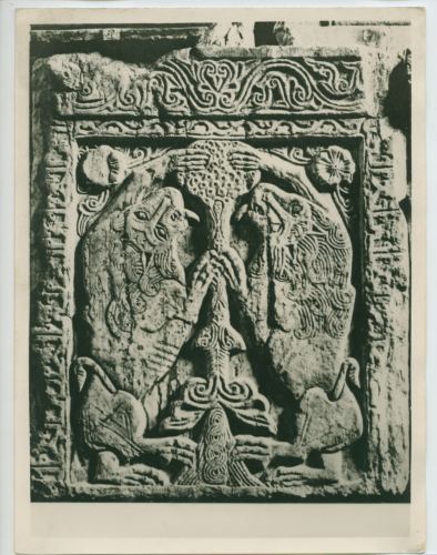 Riproduzione fotografica di un bassorilievo decorato conservato presso il Museo bizantino di Atene.