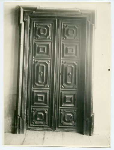 Riproduzione fotografica di una porta del sec. XVII, all'interno di un'abitazione privata di Koper (Capodistria), città della Slovenia. L'edificio, di proprietà della famiglia Pisiarello, precedentemente appartenne alla famiglia Vida.