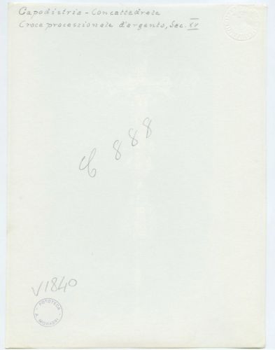 Riproduzione fotografica di una croce processionale d'argento del sec. XV conservata, nel momento della ripresa, presso la concattedrale di Koper (Capodistria), città della Slovenia.
