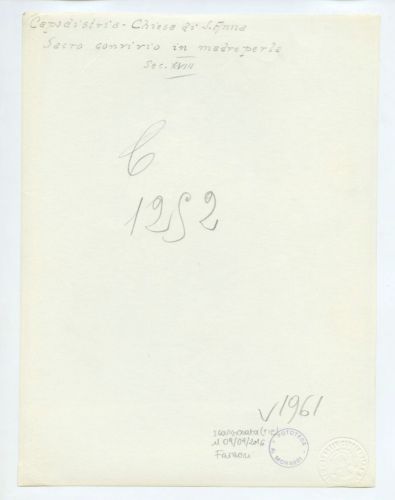 Riproduzione fotografica di un sacro convivo in madreperla del sec. XVIII conservato, al momento della ripresa, presso la Chiesa di Sant'Anna a Koper (Capodistria), città della Slovenia.