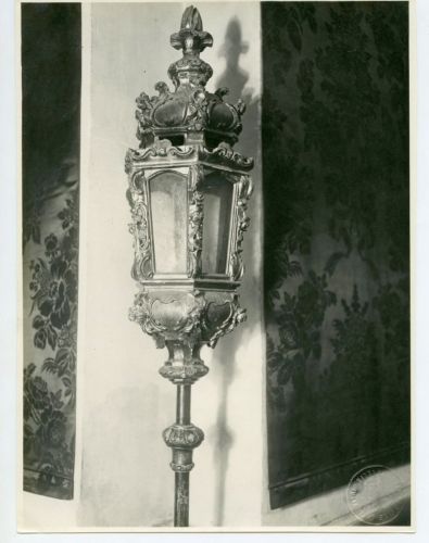Riproduzione fotografica di una lanterna da processione conservata, nel momento della ripresa, presso la Cattedrale dell'Assunta e di San Nazario a Koper (Capodistria), città della Slovenia.
