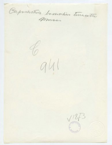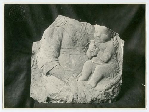 Riproduzione fotografica di un frammento di terracotta conservato presso il Museo civico di storia e d'arti di Koper (Capodistria), città della Slovenia. Si riconosce il busto della Madonna che tiene in braccio il Bambino.