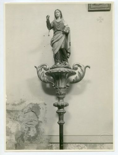 Riproduzione fotografica di un segnale da processione con la Madonna conservato, nel momento della ripresa, presso la Chiesa di San Biagio a Koper (Capodistria), città della Slovenia.