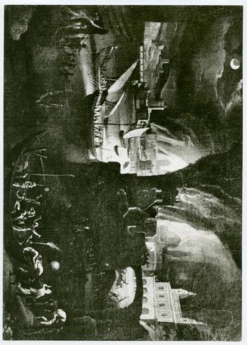 Riproduzione fotografica del dipinto raffigurante un notturno, opera di scuola fiamminga del '600, passato in asta da Christie's (Londra, 17 febbraio 1978) con attribuzione a Jan I Grevenbroeck (Johann o Giovanni Grevenbroeck), detto il Solfarolo, nonno del celebre Jan II van Grevenbroeck (Giovanni Grevembroch, 1731-1807).