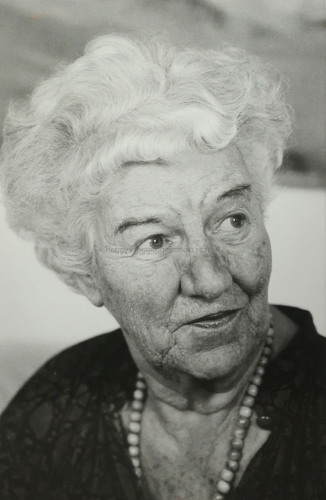 Servizio fotografico: Servizio fotografico: Peggy Guggenheim con vestito scuro a fiori a Palazzo Venier