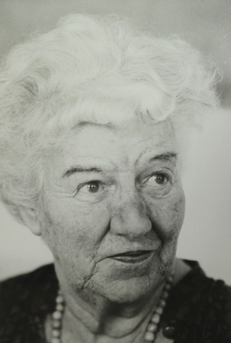 Servizio fotografico: Servizio fotografico: Peggy Guggenheim con vestito scuro a fiori a Palazzo Venier