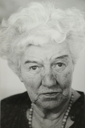 Servizio fotografico: Servizio fotografico: Peggy Guggenheim con vestito scuro a fiori a Palazzo Venier