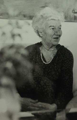 Servizio fotografico: Servizio fotografico: Peggy Guggenheim con vestito scuro a fiori a Palazzo Venier