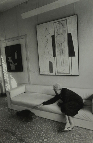 Servizio fotografico: Servizio fotografico: Peggy Guggenheim con vestito scuro a fiori a Palazzo Venier