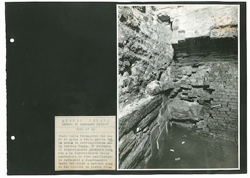 Stato delle fondamenta in corrispondenza della vecchia fognatura, prima del restauro.