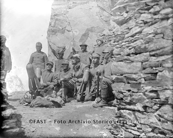 Gruppo di soldati in una postazione di tiro d'artiglieria.