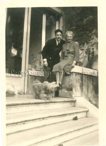 Peggy Guggenheim assieme a John Phillips all'entrata del Palazzo Venier dei Leoni negli anni cinquanta.