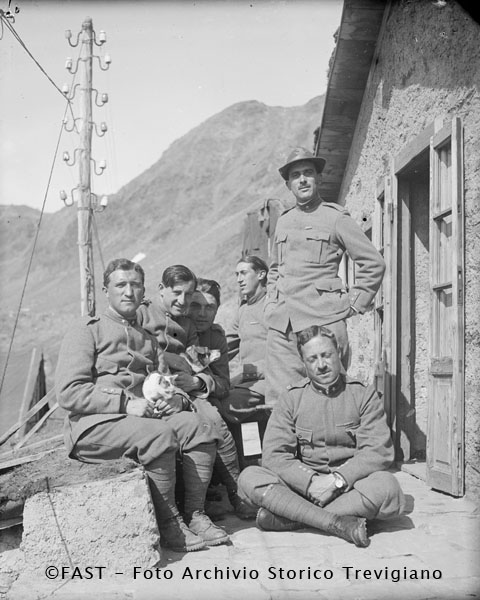 Gruppo di Alpini davanti ad un rifugio.