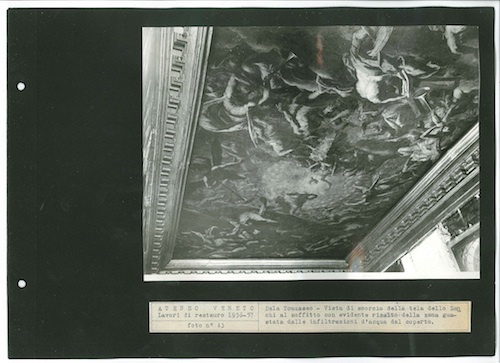 Giudizio Universale dipinto da Zanchi e collocato sul soffitto della Sala Tommaseo. La ripresa ha lo scopo di metterne in evidenza la gora causata da infiltrazioni d'acqua.